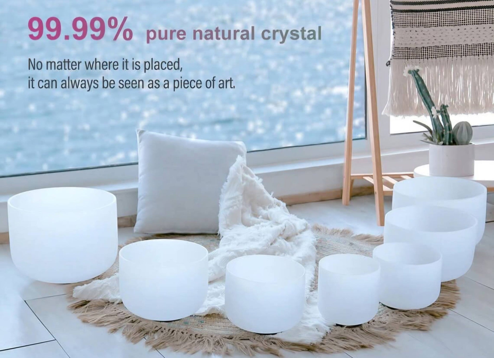 KAMPANJE / 7 PCS Crystal Singing Bowls Set 432Hz 6"-12" - Chakra Quartz Sound Bowls - Including Mallets, Carrying Bags, 7 x Frosted White Quartz Bowls