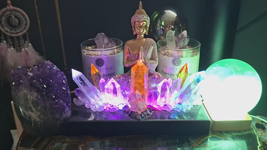 KAMPANJE / Exclusive Crystal Quartz Illumination Home Decoration Lamp, " Golden Sitting Buddha - " Radiating Sunshine " 💚💜