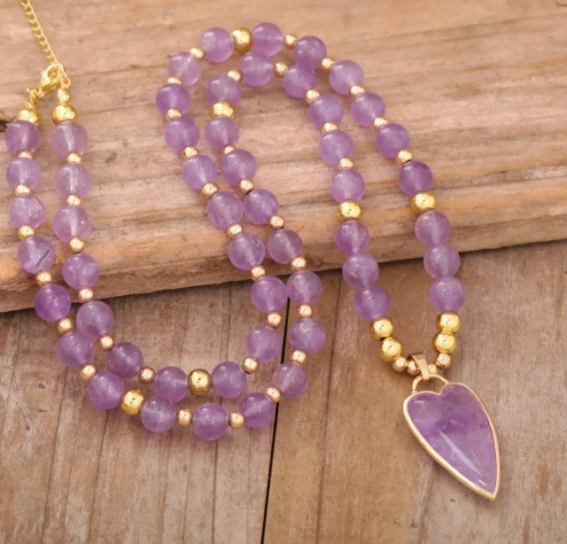 Nye MICCI Design Hexagon Quartz Point kjeder, Gold Electroplated - 7 stentyper
