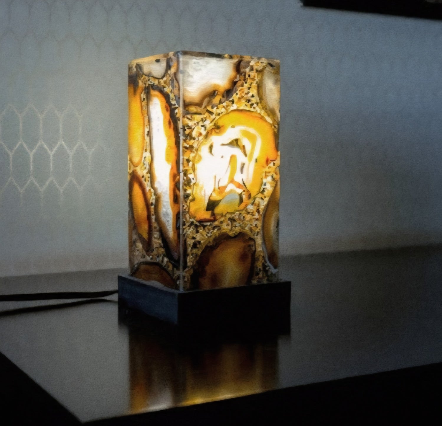 Natural Agate Desk Lamp Handmade in Brazil - Small, Compact & Elegant