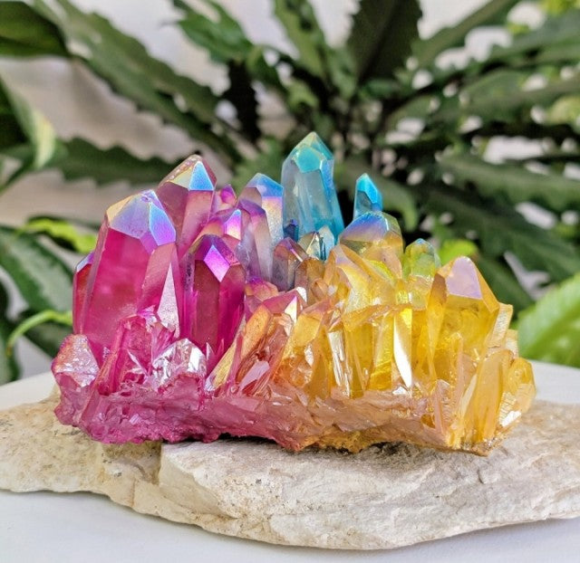 NEW / 10" Tall Handmade Brazilian Clear Quartz Gemstone Tree, Green Quartz...