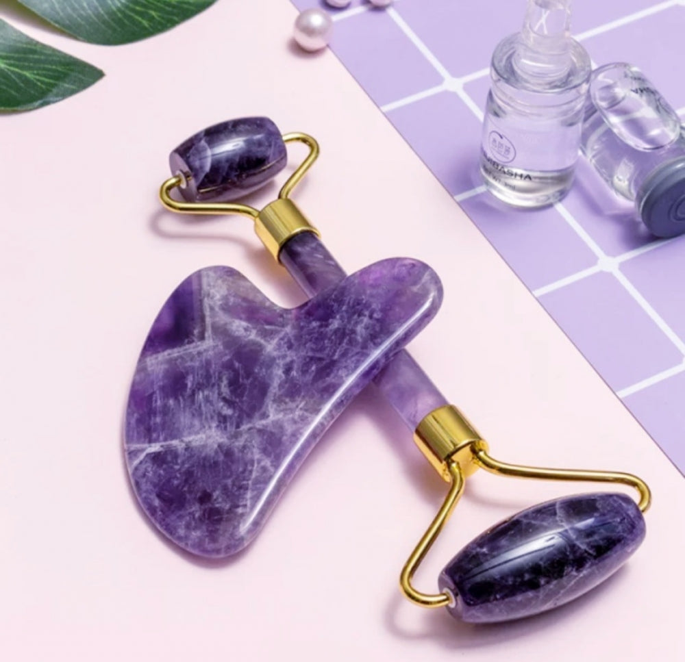 2- 1 Ametyst Roller & Gua Sha Facial Spa Set