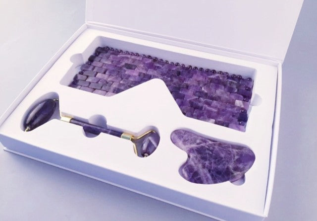 3 - 1 Ametyst Eyemask Roller & Gua Sha facial Spa Set