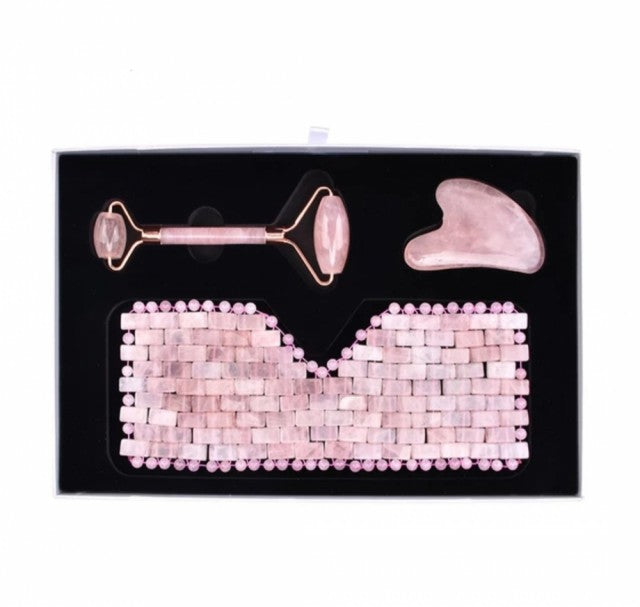 A Rose Quartz facial massage set.