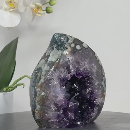 Natural Uruguay Amethyst & Agate Flame Geode, 12.5 x 15cm - FST0151