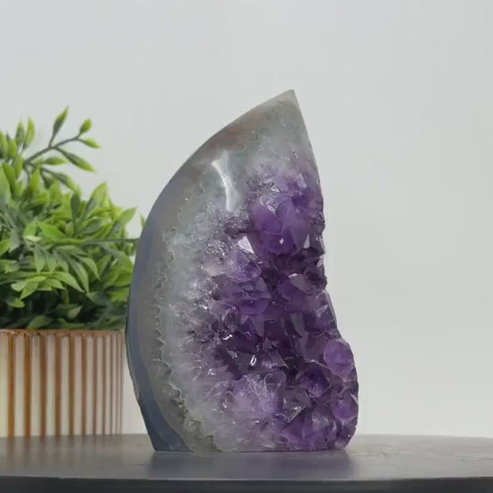 AAA+ Stunning Natural Uruguay Amethyst & Agate Flame Geode, 14x9cm - FST 0166