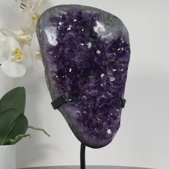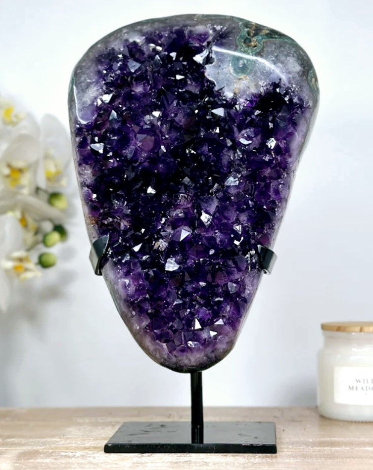 ✧ Extracted from the prestigious Don Camilo mine located in Artigas, Uruguay, this unique crystal piece boasts a natural elegance. Its edges have been delicately polished to accentuate the crystals' unique and vibrant colors.