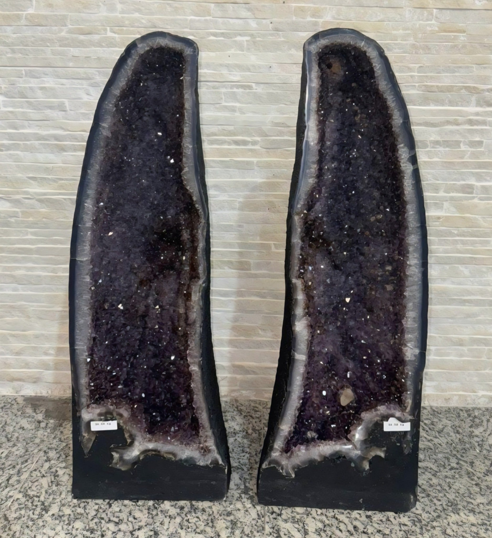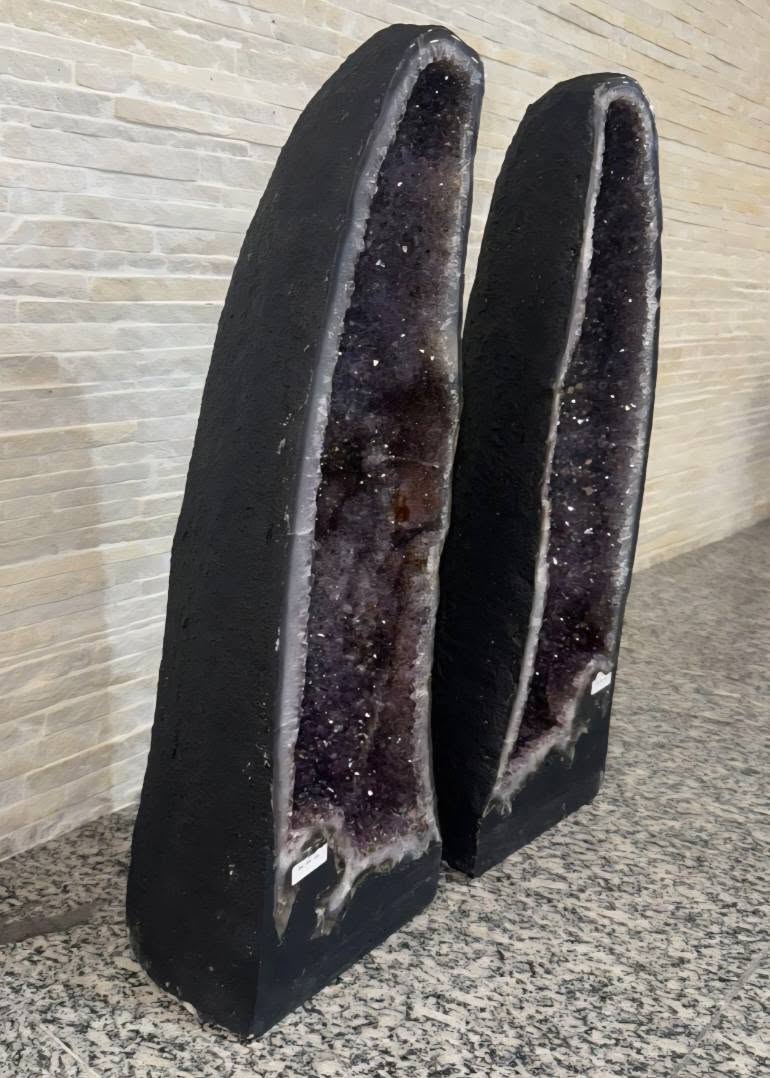 Høye Brazilian Amethyst Cathedral Par - Naturlig Big Ametyst Crystal Geoder, 69kg Totalvekt Par - 75x20cm pr. Geode