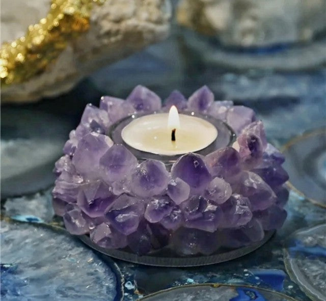 Ametyst Cluster råkrystalldekorasjon m/innvendig glass til Telys , 10cm