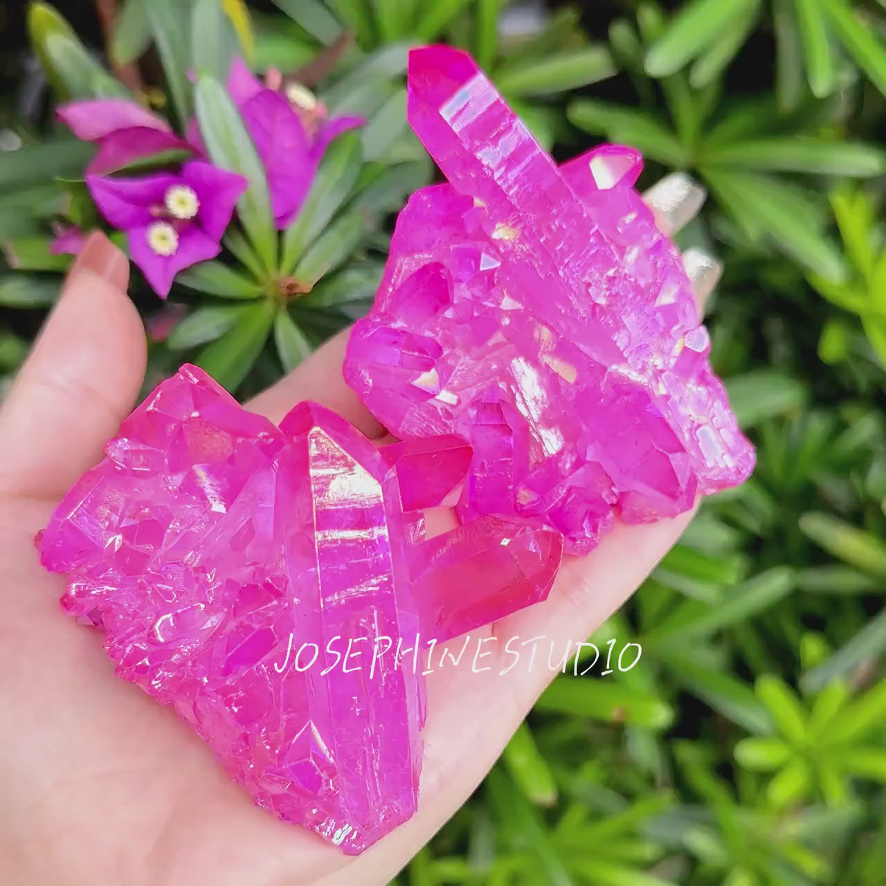 Black November / Superflotte og unike Aura Quartz Clustre, 80 - 100gram, Leveres i 4 farger , Green, Pink, Blue, Gold Rainbow