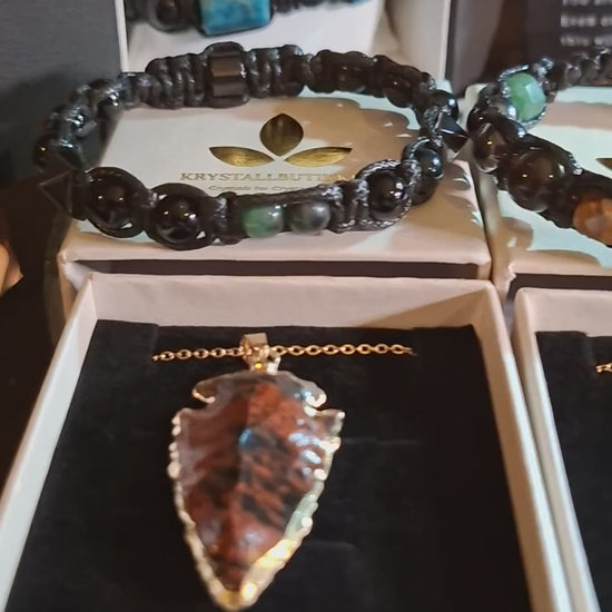 Her har vi plukket ut Milam Design Chambhala armbånd for herrer og et kjede med JASPER Arrowhead anheng. ( Se Video )