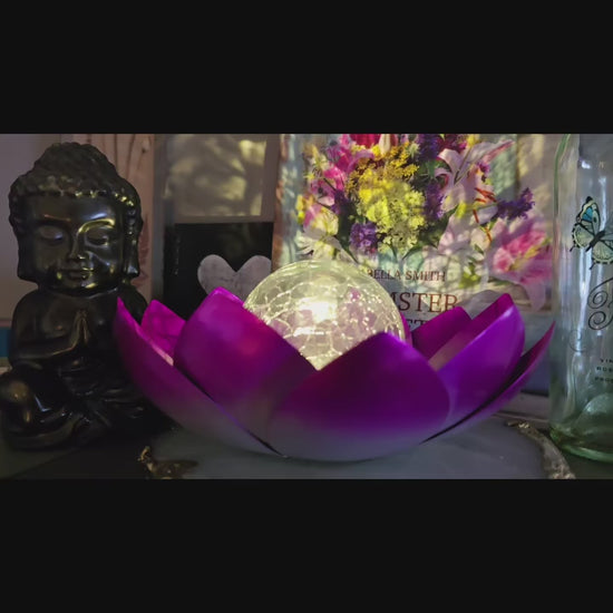 - Solar Powered Illumination: Our lotus flower outdoor lights harness solar power, charging during the day and automatically lighting up at night for up to 8 hours. The solar panel is thoughtfully placed at the bottom of the transparent cracked glass bulb for maximum exposure.