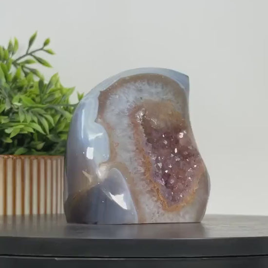 Blue Uruguay Agate, Amethyst & Quartz Flame Carving, 11x10.5cm FST0152