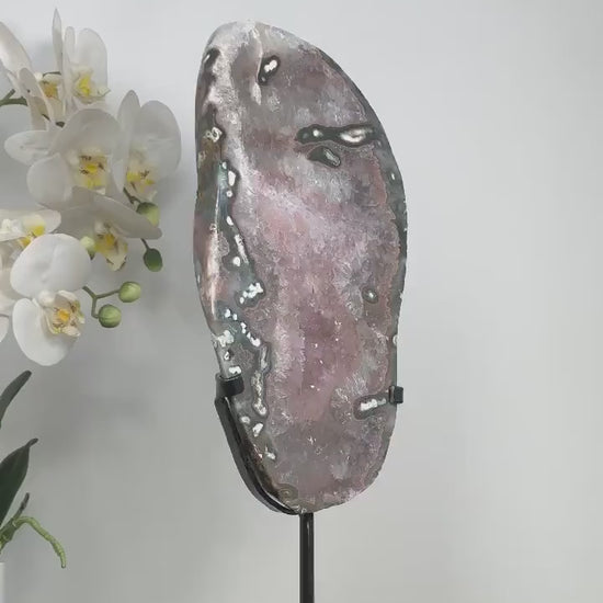 Beautiful Natural Large Pink Ametyst Quartz Crystal Slice, Stand included - MWS2331, 33.5 x 15cm