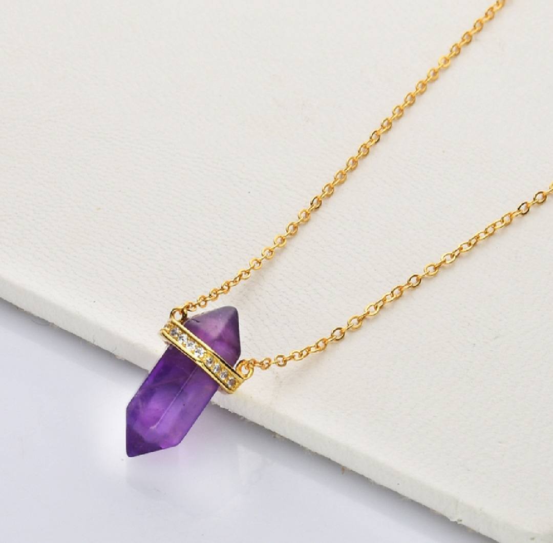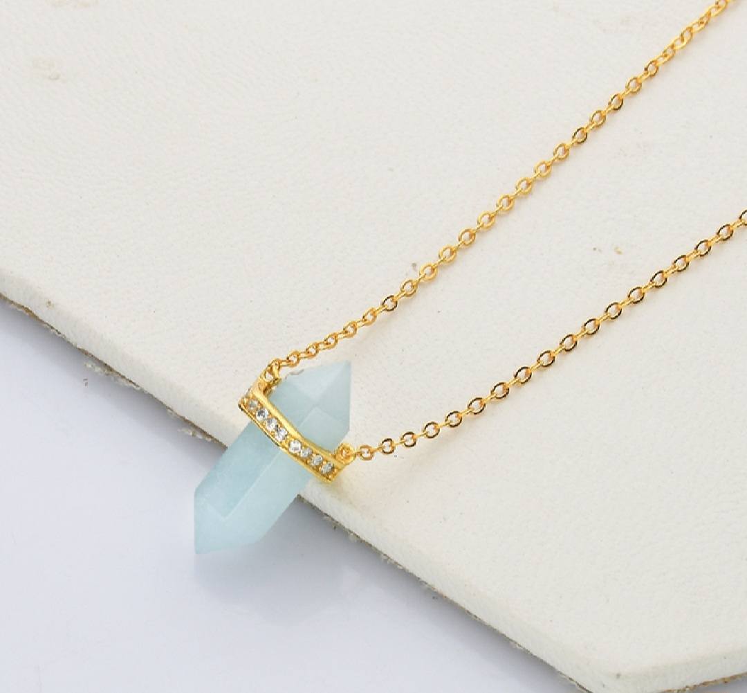Nye MICCI DESIGN 18K Goldplated - 925s Ring og Kjedesett med natural stones 💜💚