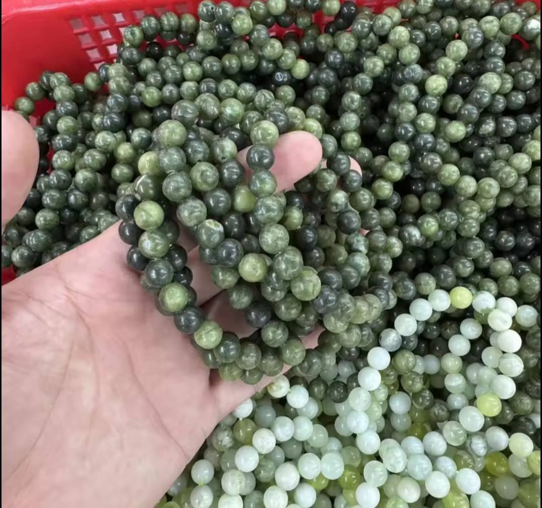 Enkelt og fleksibelt steinarmbånd, Mørk Grønn JADE 8mm