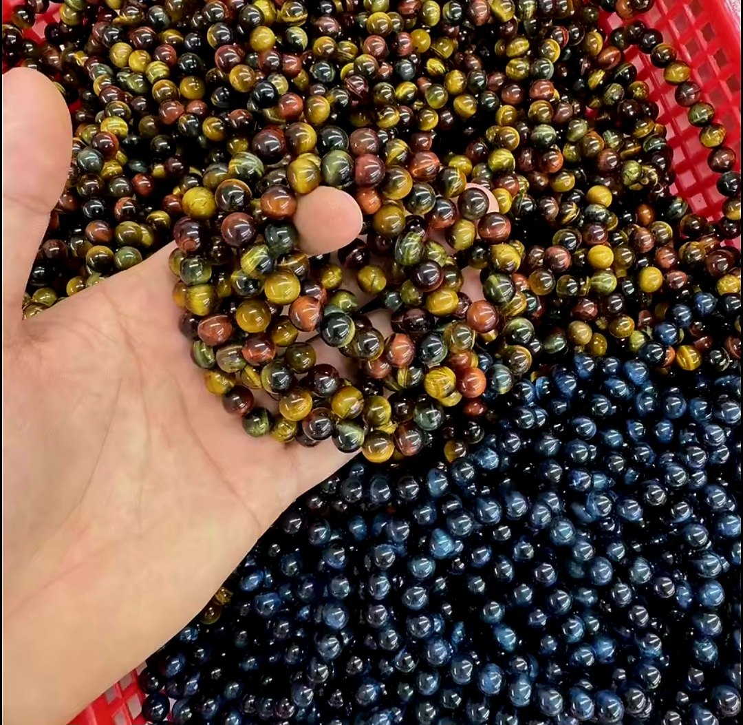 Enkelt og fleksibelt steinarmbånd, Tigereye Tree Color , 8mm