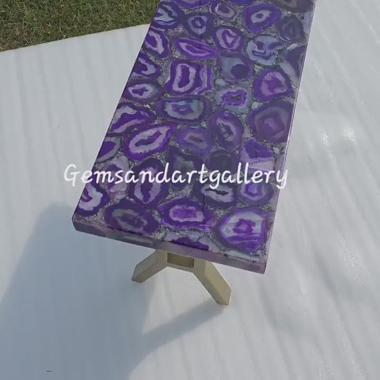 EXCLUSIVE NATURAL PURPLE AGAT TABLE ( Sofa, Coffe, Side, Dine ) , 60x30cm - Backlit (ledlys) og bordben...