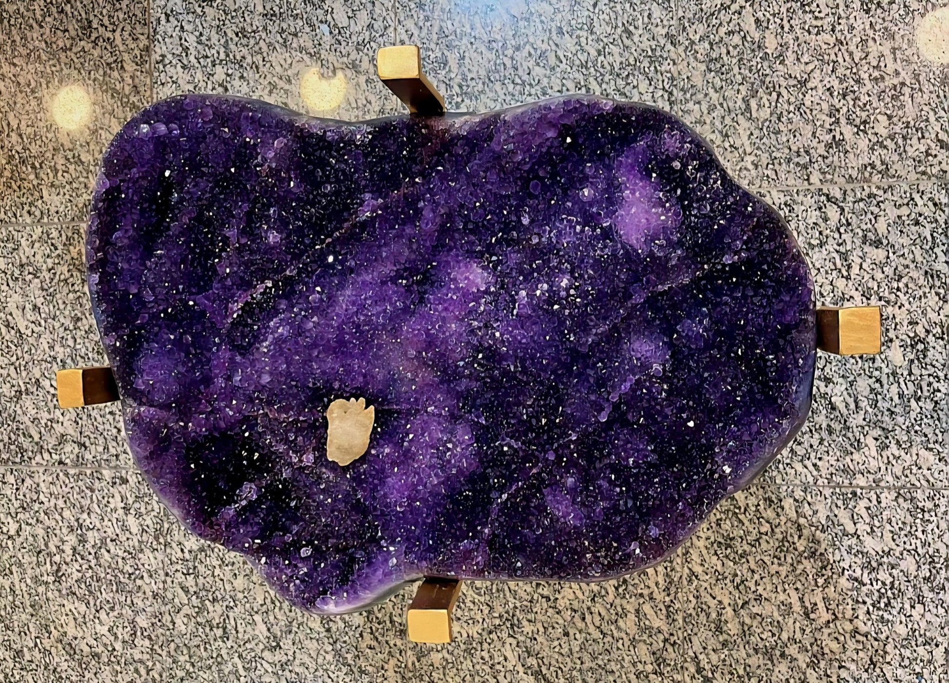 KAMPANJE / HIGH QUALITY BRAZILIAN AMETYST CLUSTER GEODE COFFEE / SOFA TABLE, 31KG - 61x44cm, Høyde 58cm