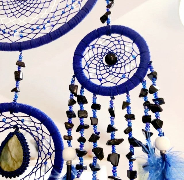 Håndlaget, vakker Labradorite "Tree of Life" Drømmefanger m/ledlys og batteribox, 16x65cm