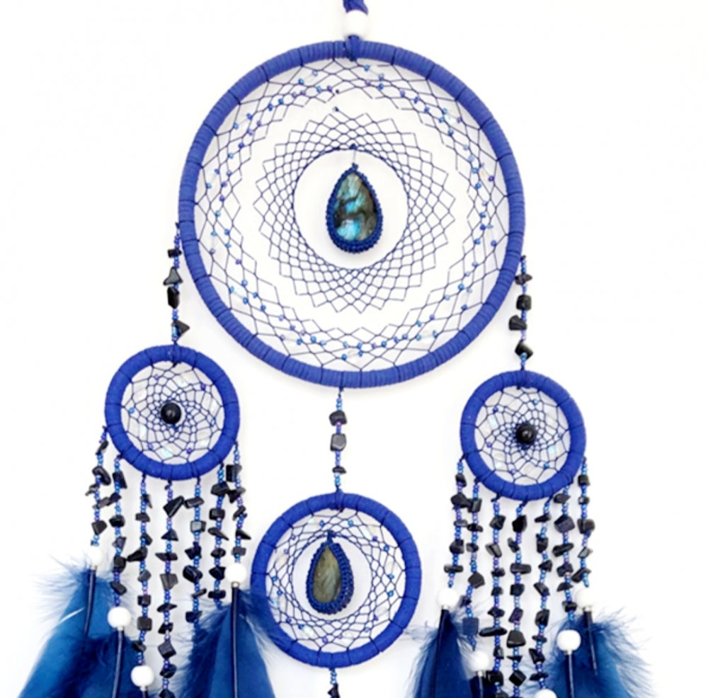 HÅndlaget, vakker Labradorite "Tree of Life" Drømmefanger m/ledlys og batteribox, 16x65cm