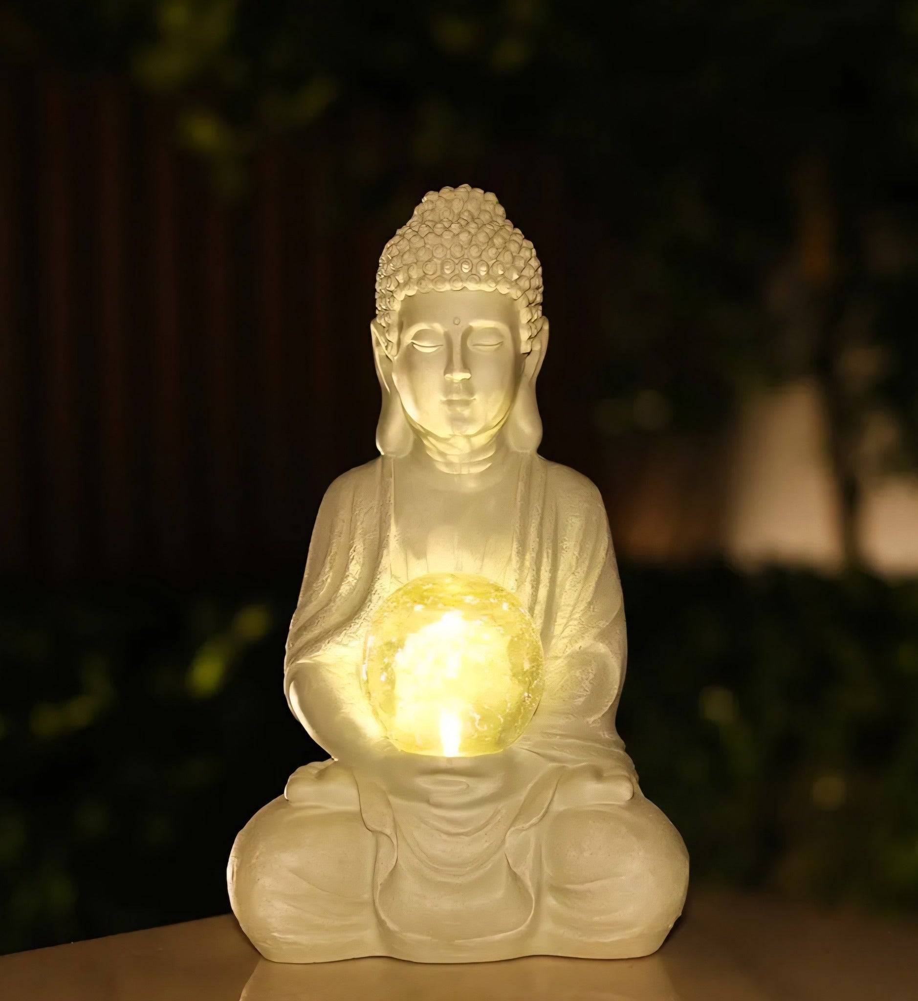 - Solar-Powered Design - This buddha statue garden figurine features a solar panel, it will absorb sunlight during the day with the quality solar panel equipped. Illuminate your outdoor space at night with this meditating garden statue featuring light-up turtle shell that emit a warm glow as the sun sets or the surroundings become dark.