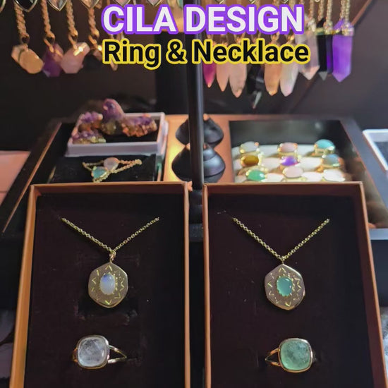 KAMPANJE NATURAL STONE JEWELRY PACK ( CILA 18K Goldplated Medalion Necklace + MICCI Design Ring w/Natural Stone )
