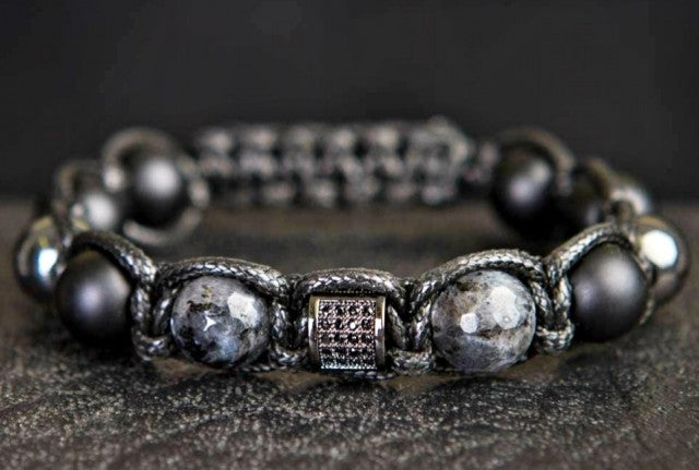 KAMPANJE /Trendy og Exclusivt Shambhala ArmbÅnd , Larvikitt, Hematitt og Sort Onyx , unisex og justerbare