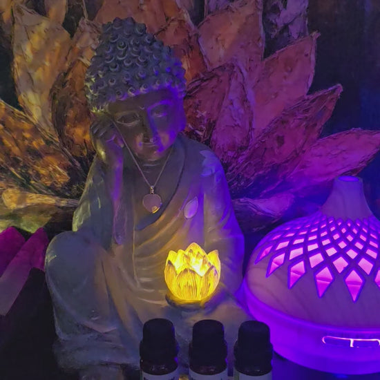 HØSTENS HOME DECOR PAKKE - SUPERDEAL / BUDDHA STATUE w/Lotus Flower Light + Extra Free Bonus Lotus Flower + Lotus Diffuserpakke m/Oljer