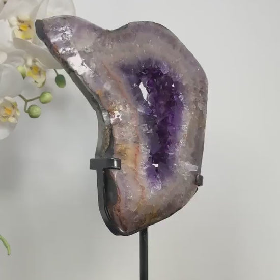 Large Natural Amethyst Portal, Handmade Stand Included, Decorative Portals, Custom Metal Stand, MWS2324, 25.5x17cm