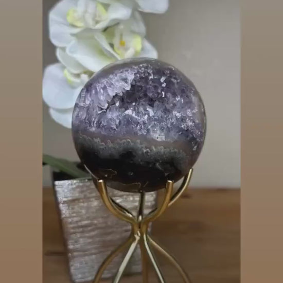 Discover the natural beauty of this Amethyst geode sphere, showcasing deep purple quartz crystals that contour its polished surface as seen in the listing image. Unlike typical decorative orbs, this unique crystal healing stone combines authentic mineral craftsmanship with spiritual energy, making it a distinctive addition to your home or meditation space.