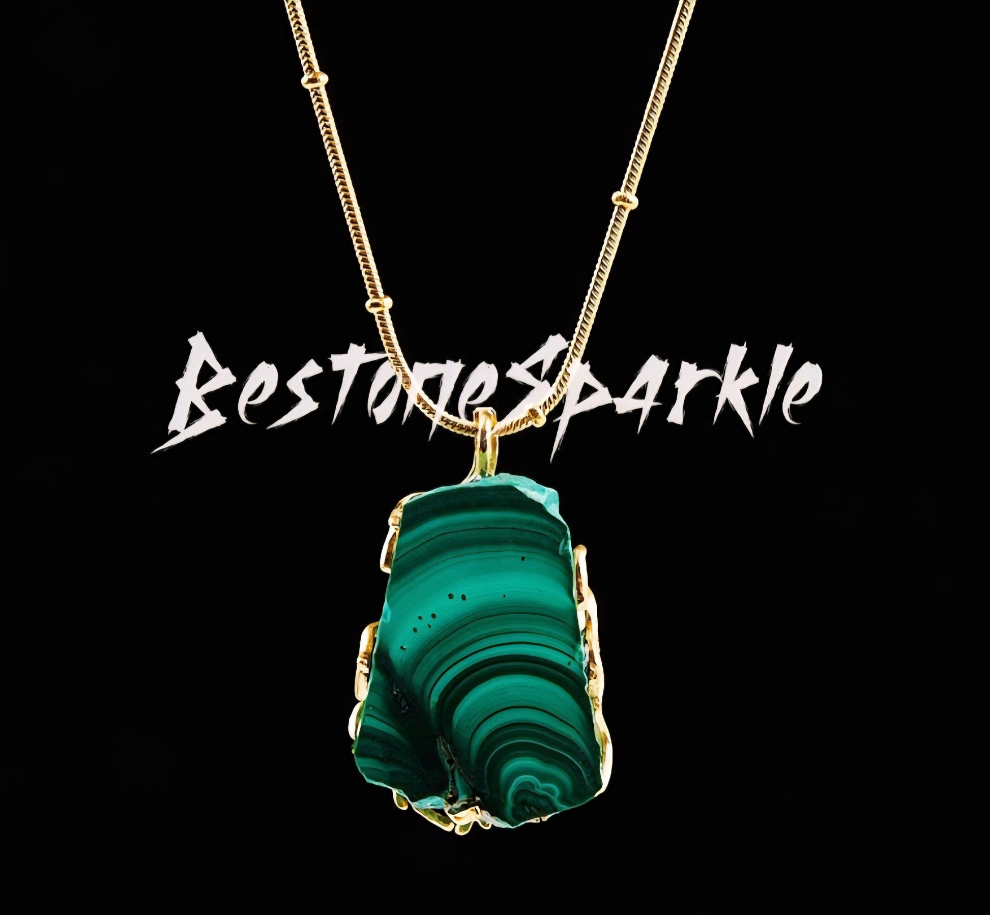 New Raw Malachite Pendant Slab Gold Necklace, “Stone of Transformation”, May Birthstone, 24K Gold-Plated Chain