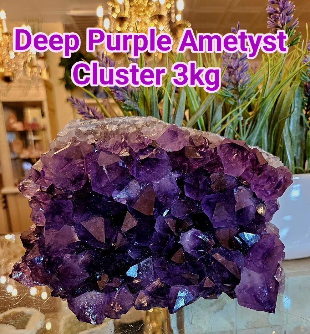 Supervakkert, Extra High Quality XL Ametyst Cluster på 3kg. Store lilla og klare spisser gjør det spesielt og kraftfult. Clusteret måler ca. 23x15x9cm