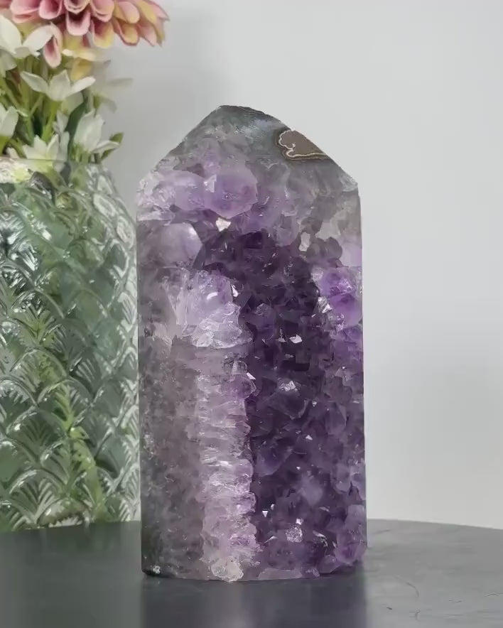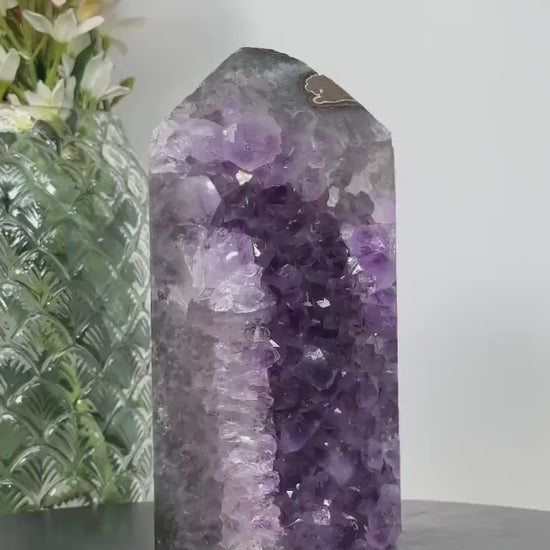 MÅNEDENS UTVALGTE / Natural Uruguay Amethyst & Agate Stone Tower AAA+ Quality Geode, 19x10cm, STP0178