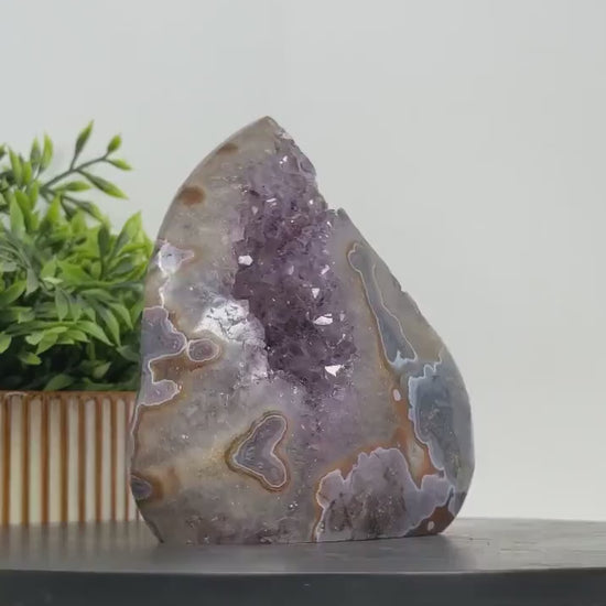 MÅNEDENS UTVALGTE / Natural Amethyst & Agate Stone Flame Carving, 13.5x12.5cm FST0158