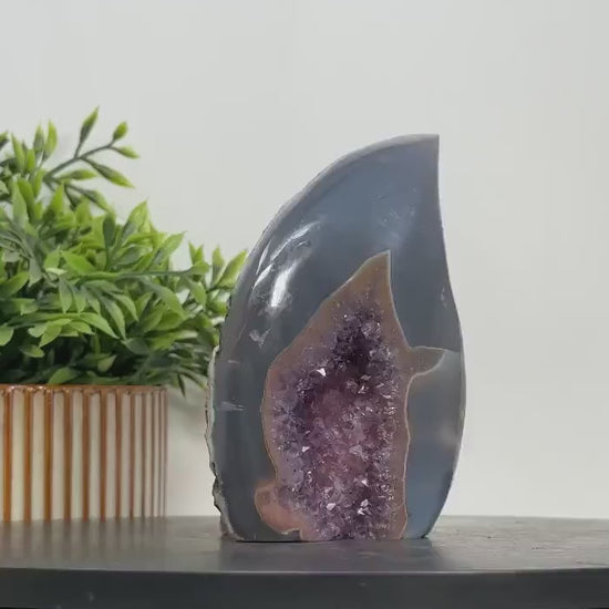 MÅNEDENS UTVALGTE / Natural Uruguay Amethyst Agate & Jasper Stone Flame Carving, 13x8cm - FST0157