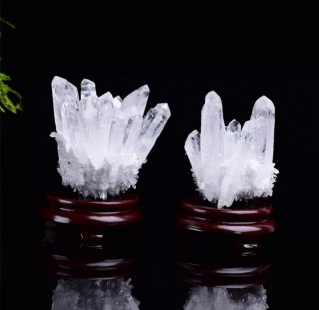 Dette er Quartz Krystaller som er fremstilt syntetisk og bearbeidet for å få frem dette designet og fargen. Fargen størrelser vil variere. Bunnen er laget manuelt og veldig populære til hjemmedecor på kontoret, utstilling osv. Meget prisgunstige og et dekorativt alternativ til naturlige Crystal Quartz Clustre som er veldig kostbare i denne størrelsen og ofte vanskelige oppdrive med samme farge og design ..Derfor fremstilles til manuelt på denne måten.