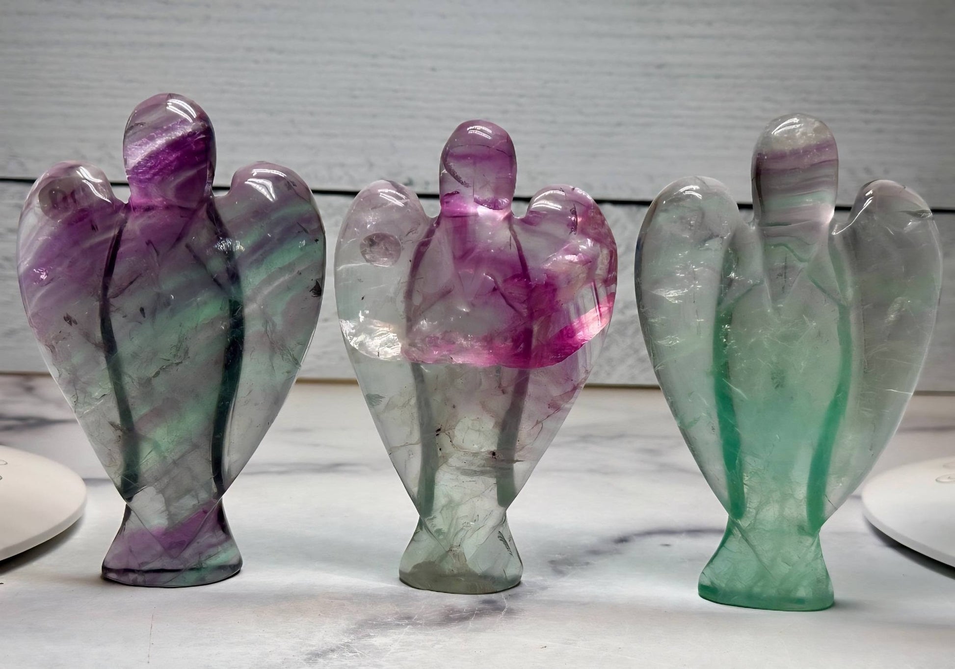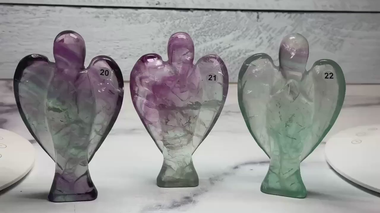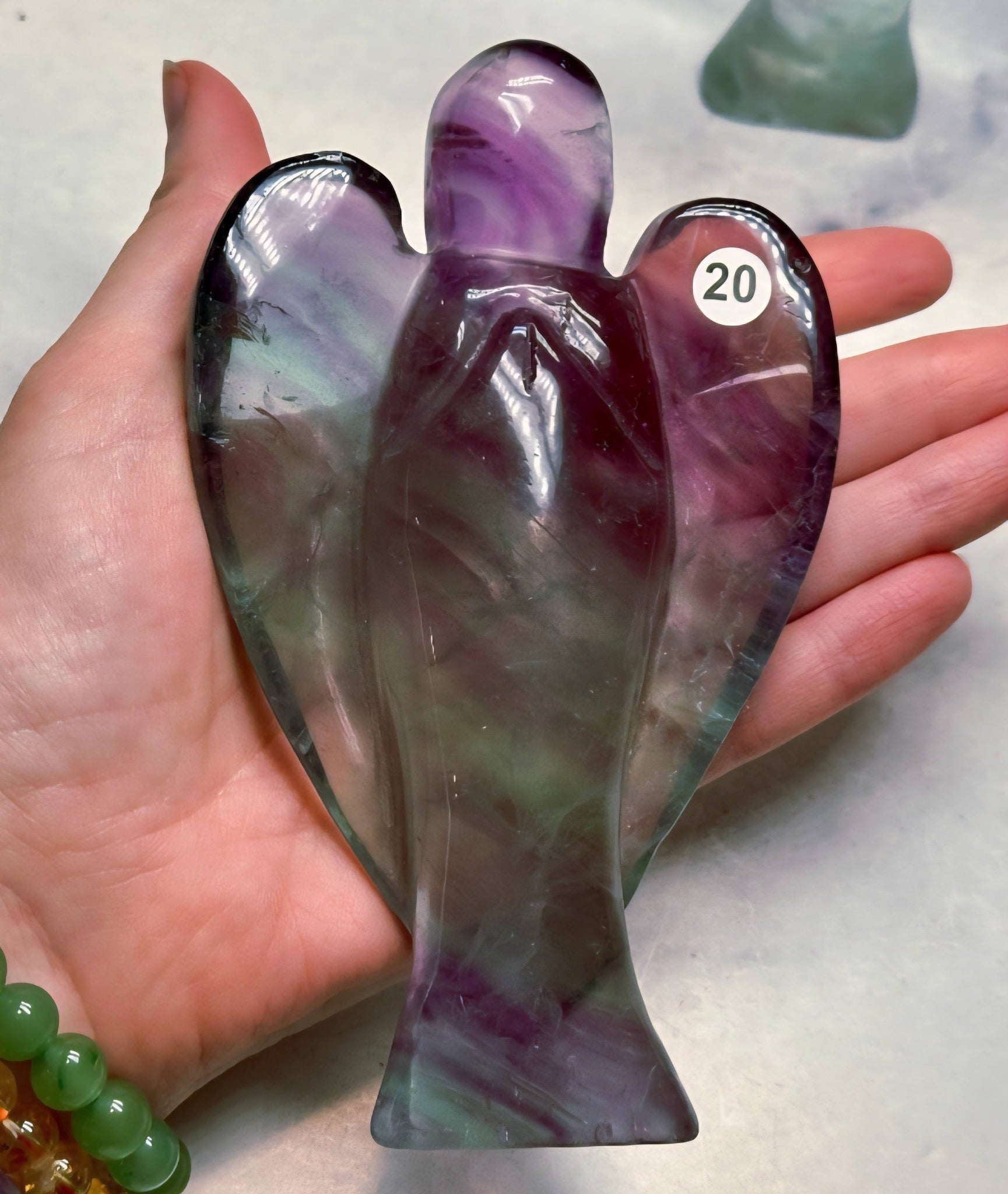 Medium stor Fluoritt Regnbue Engel , ca 14cm, 300gram