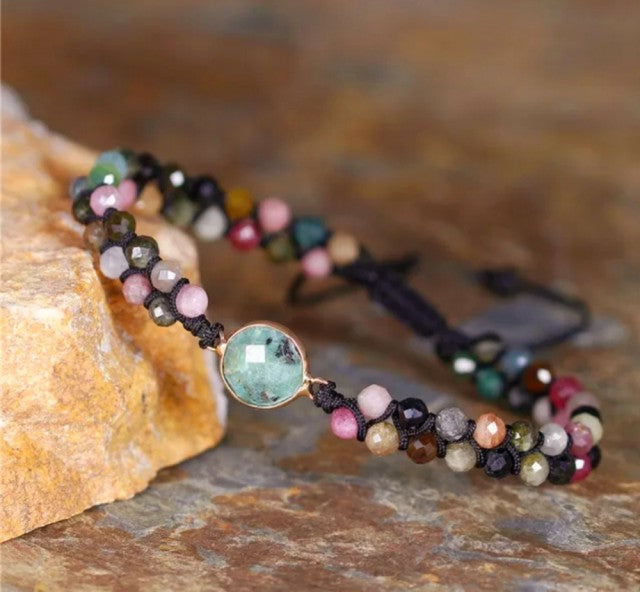Merkaba 2 rader armbånd m/Turmalin sten