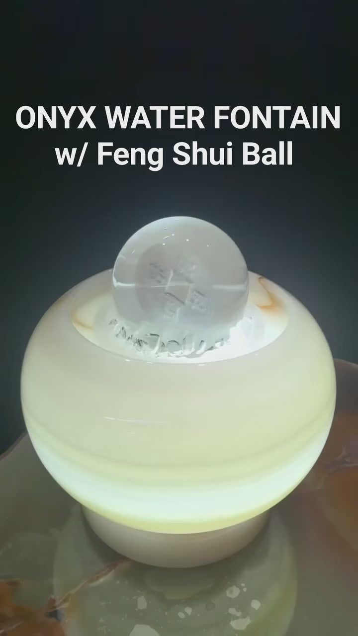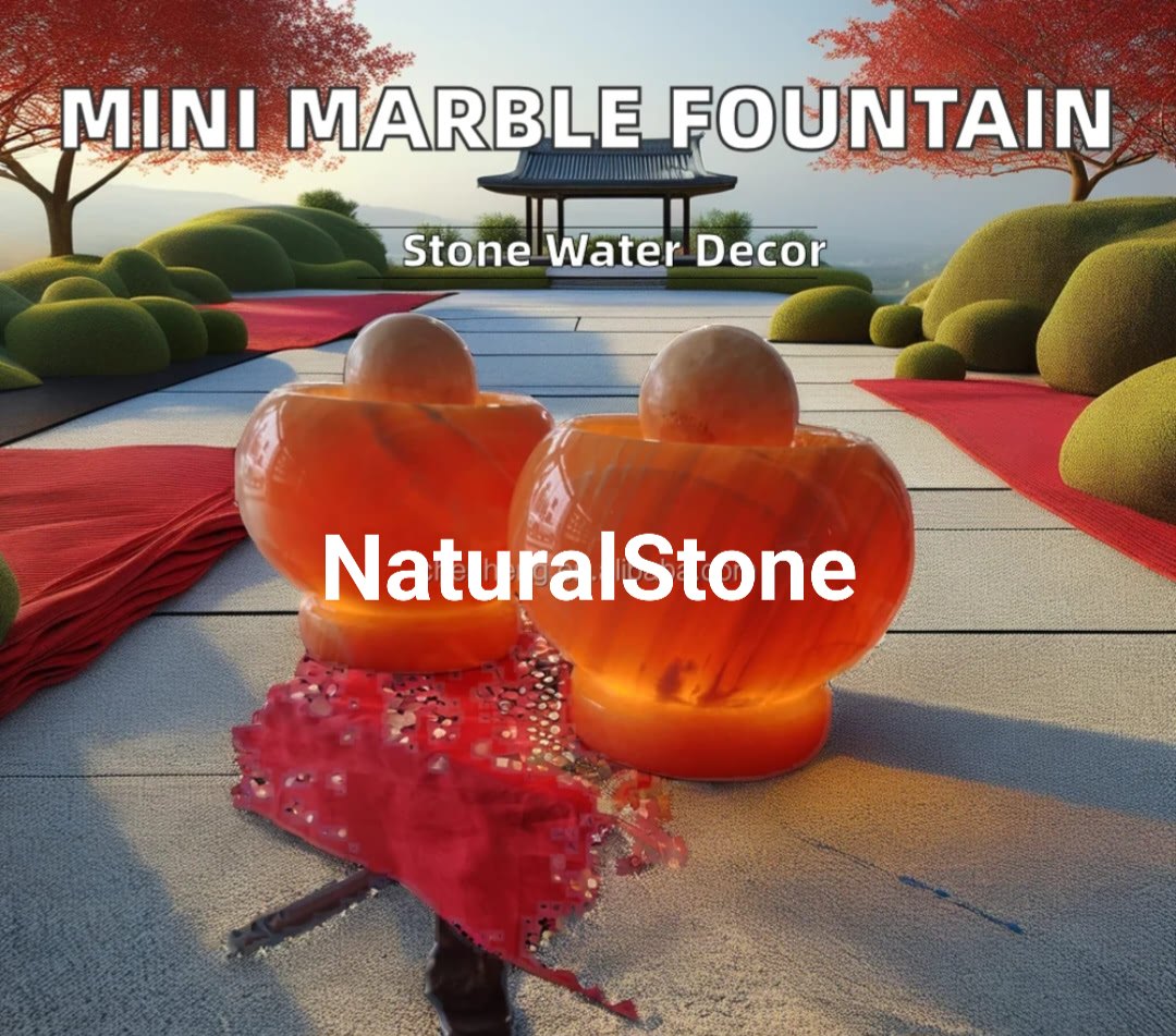 Nye, dekorative mini fotener i naturlig marmor/onyx med ledlys og vann. Disse leveres i to størrelser Medium - Large og er ca. 20/30cm og veier 10/20kg. På toppen snurrer en Onyx eller en Feng Shui kule i vann med asiatiske tegn for velstand og et godt liv. .. De er veldig dekorative for innebruk og leveres i to farger Honey Gul & Light Green Onyx. Enkle i bruk med vanlig strømkontakt og brytere for vann og ledlys.