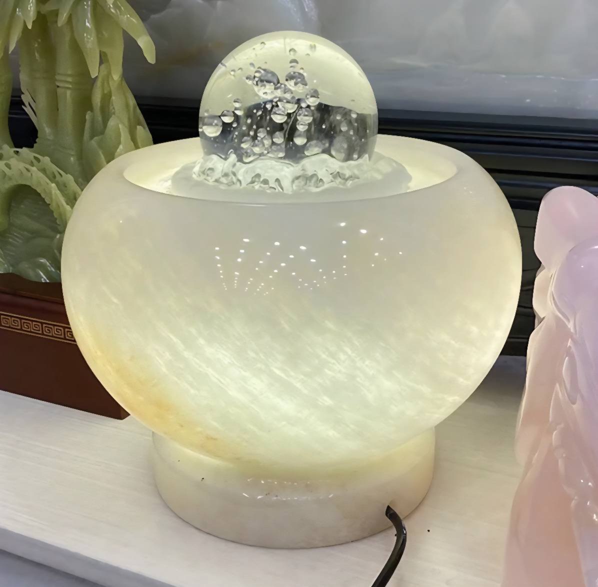 New 2025 Marble Water Fountain w/rotating Crystal Sphere, Light Green Onyx, High Quality, Medium Size - 20x20x22cm, approx 13kg