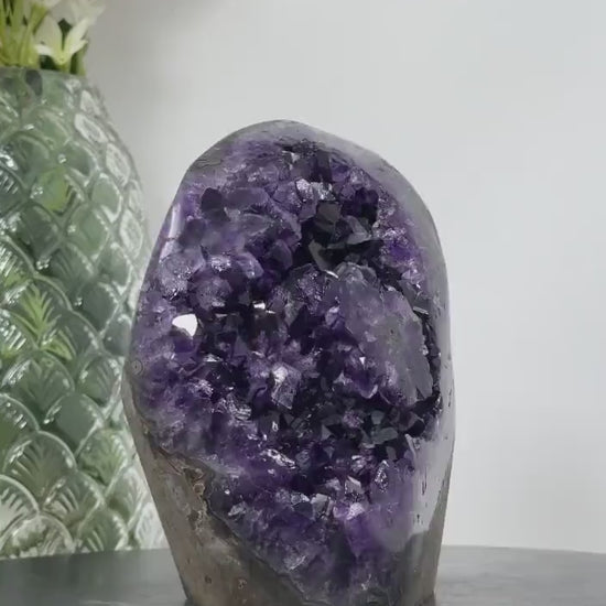 Handcrafted from premium quality Uruguayan Amethyst, these geodes are not only stunning pieces of home decor, but also natural sources of positive energy.