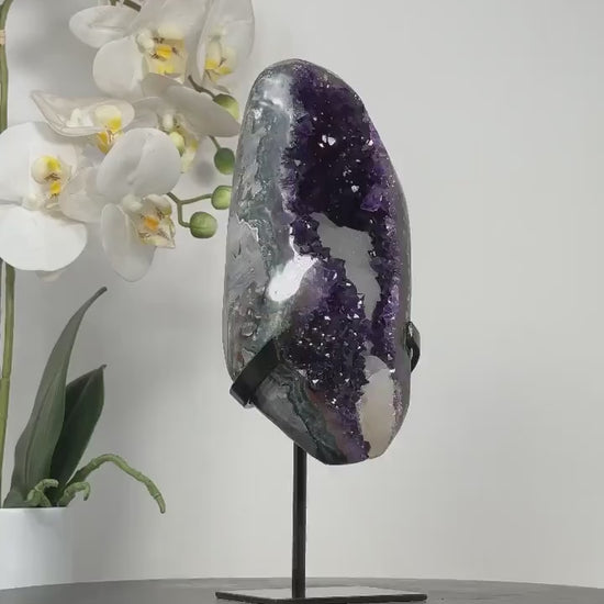 Månedens Utvalgte / Natural Uruguay Amethyst Geode with Green Jasper Shell & Calcite - MWS2353, 24x9.5cm - 2kg
