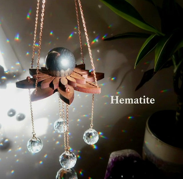 New 2024 Lotus Rainbow Crystal Suncatcher w/ Hematite Quartz 21mm Sphere