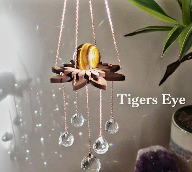 New 2024 Lotus Rainbow Crystal Suncatcher w/ Tigereye Quartz 21mm Sphere