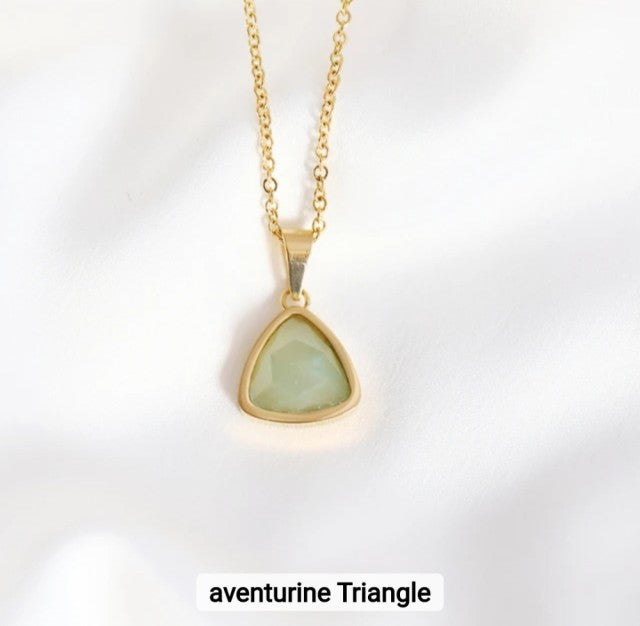 NEW MICCI JEWELRY NATURAL STONE NECKLACES, 45cm , Gold Elecrtroplated, Green Aventurine Quartz 16mm Triangel