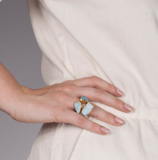 Ny, håndlaget rustik Rosegull Ring med blå Topaz