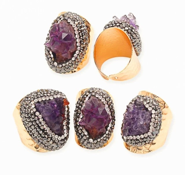 Ny og Trendy Ametyst & Rhinestone glitterstener , Gold electroplated, Justerbar