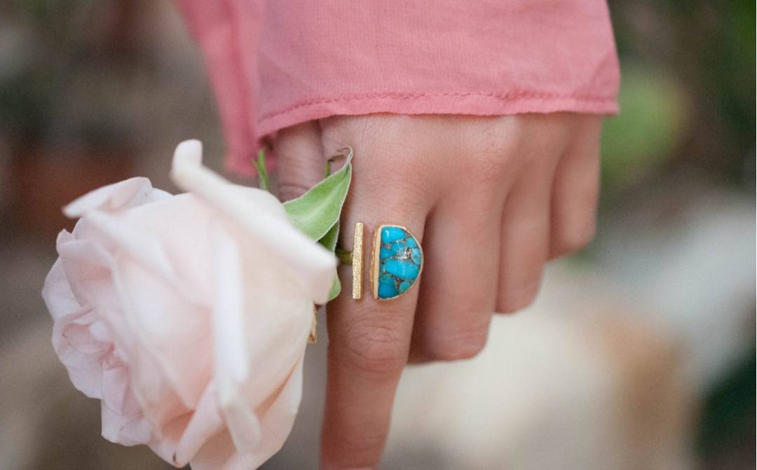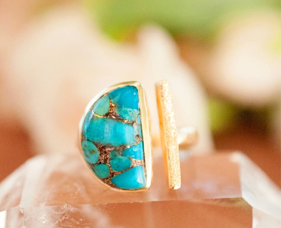 Ny og vakker, enkel håndlaget " BARBARA " Gold Vermeil m/ Copper Turquise