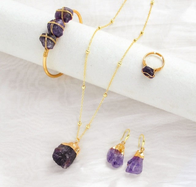 Nye 2025 Design Smykkesett ( Kjede, øredobber, ring, armbånd ), Ametyst